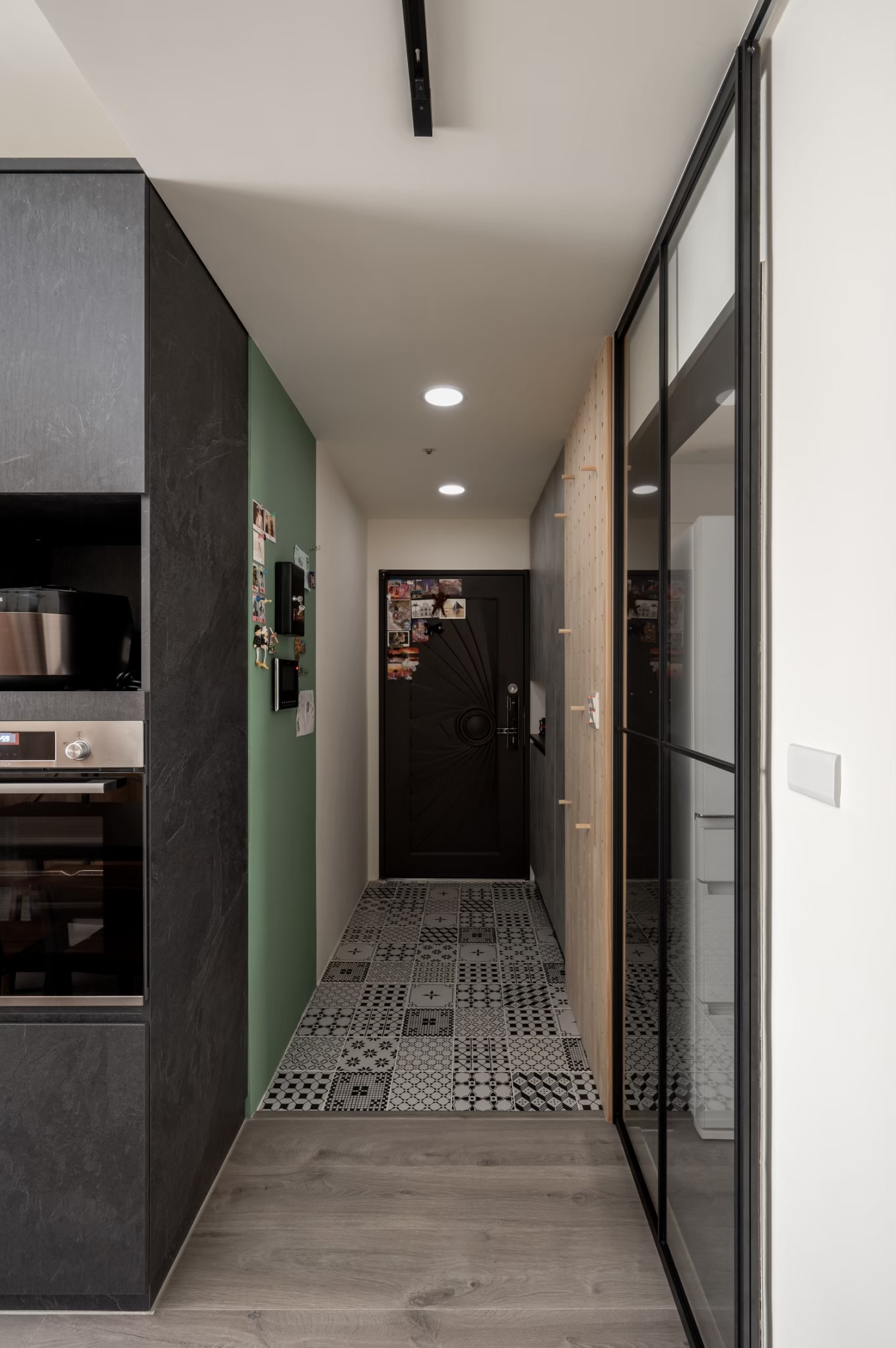 玄關的長廊有著滿滿的回憶牆,透露出一家人之間緊密的情感。