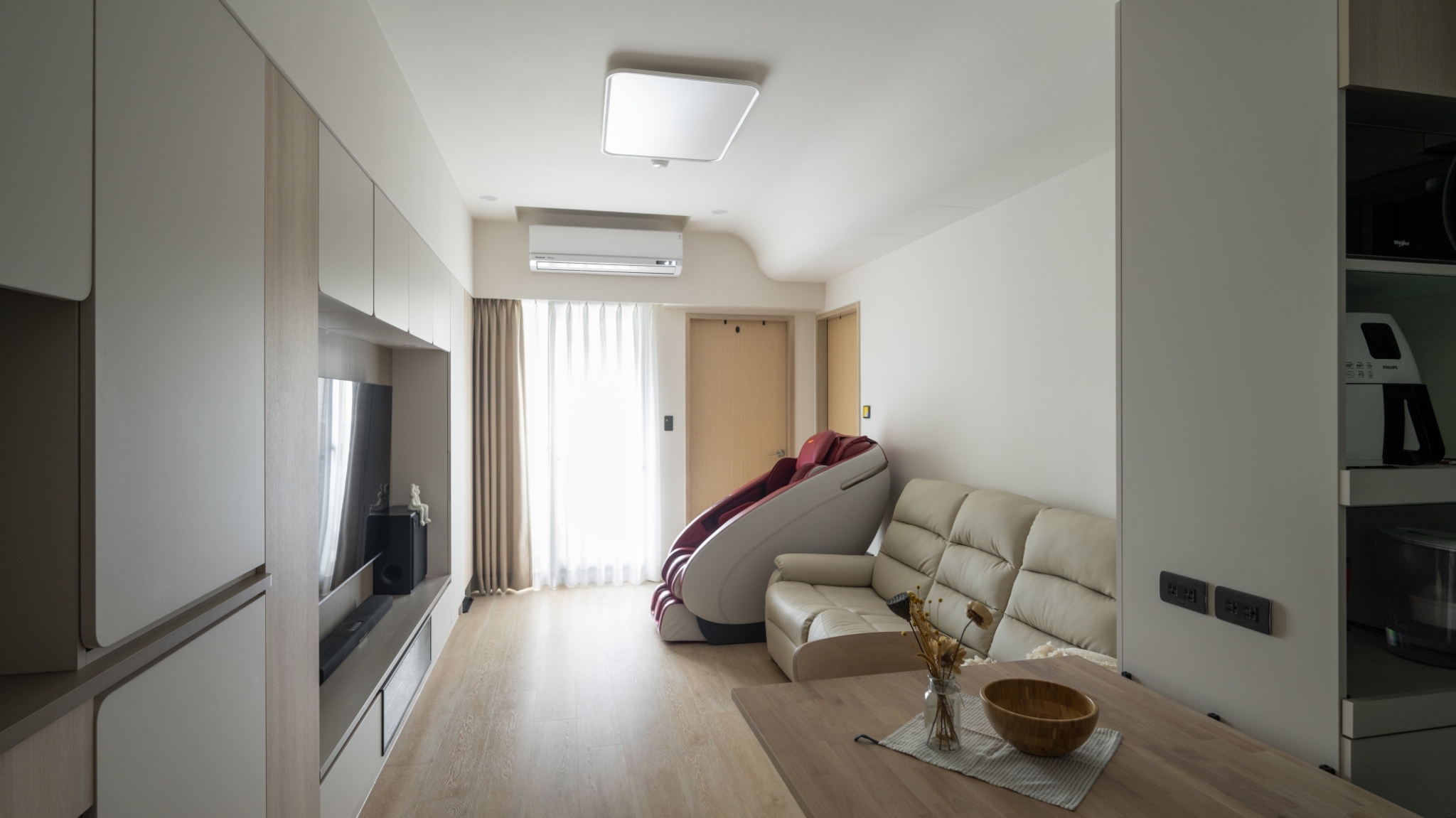 可以利用S型柔化線條使包樑不突兀,進而為客廳增添設計感。