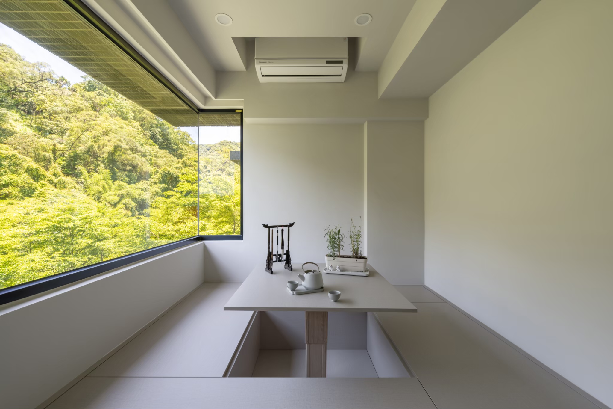 「步入式衣帽間」,運用黑色玻璃的通透與遮蔽,使視覺不壓迫同時又保有隱私。