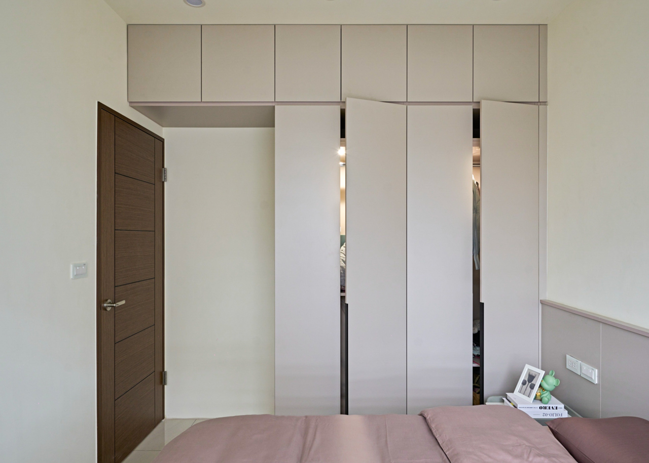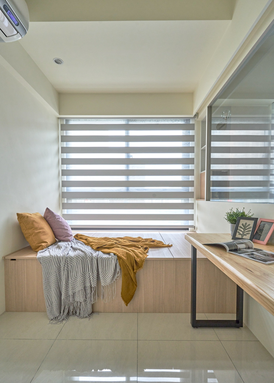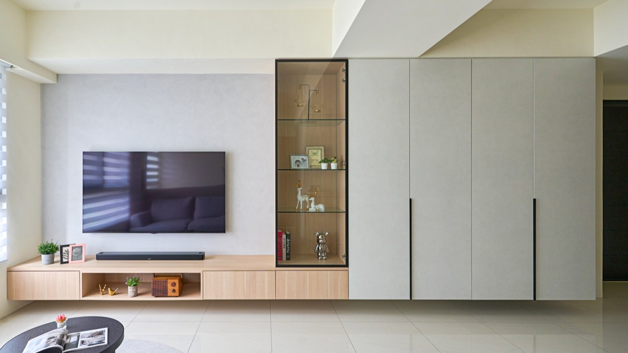 整體色調純淨舒適,隱形格柵門為設計小巧思,屋內空間為毛小孩周到設想。
