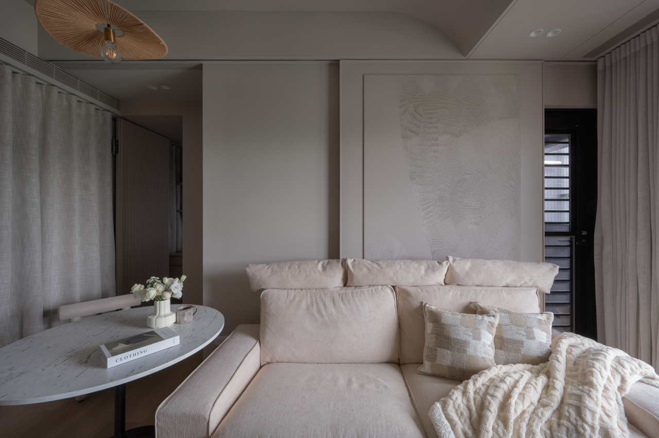 整體米白色基底製造輕盈舒適風格,空間線條簡約俐落
